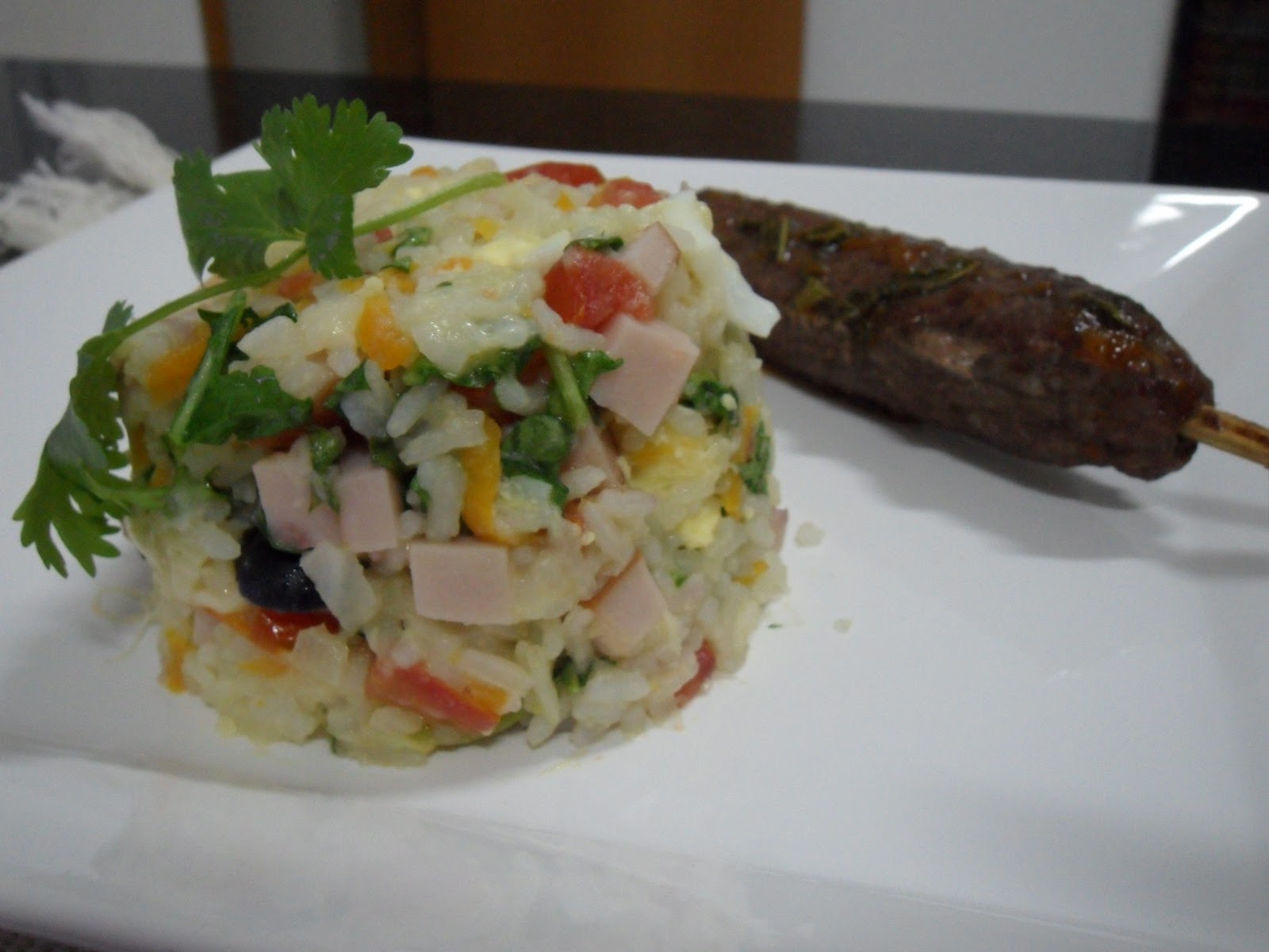 A base desse prato é o arroz, portanto dá pra se colocar qualquer tipo de ingrediente, o que mais gostar. Pra ficar esse formato usei uma embalagem de plástico tipo dessas que a gente usa pra por azeitona em supermercado. Pra acompanhar o cordeiro fiz um molhinho que reinventei.
