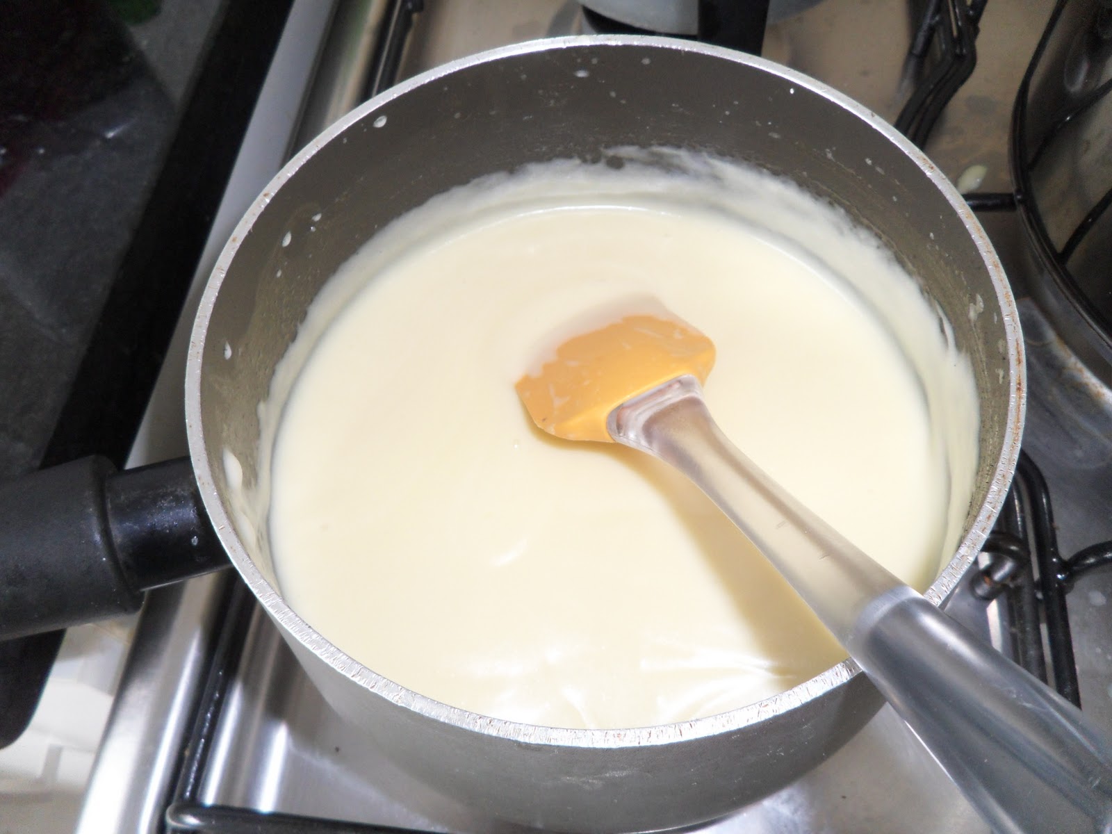 No final, na hora de servir fiz um molho de queijo para servir junto com o frango. Peguei um potinho de creme de queijo ementhal da Polenguinho, adicionei 1/3 de xícara de leite e duas colheres de nata. Engrossei esse caldo até se transformar em um creme consistente. Coloquei por cima do frango delicadamente.