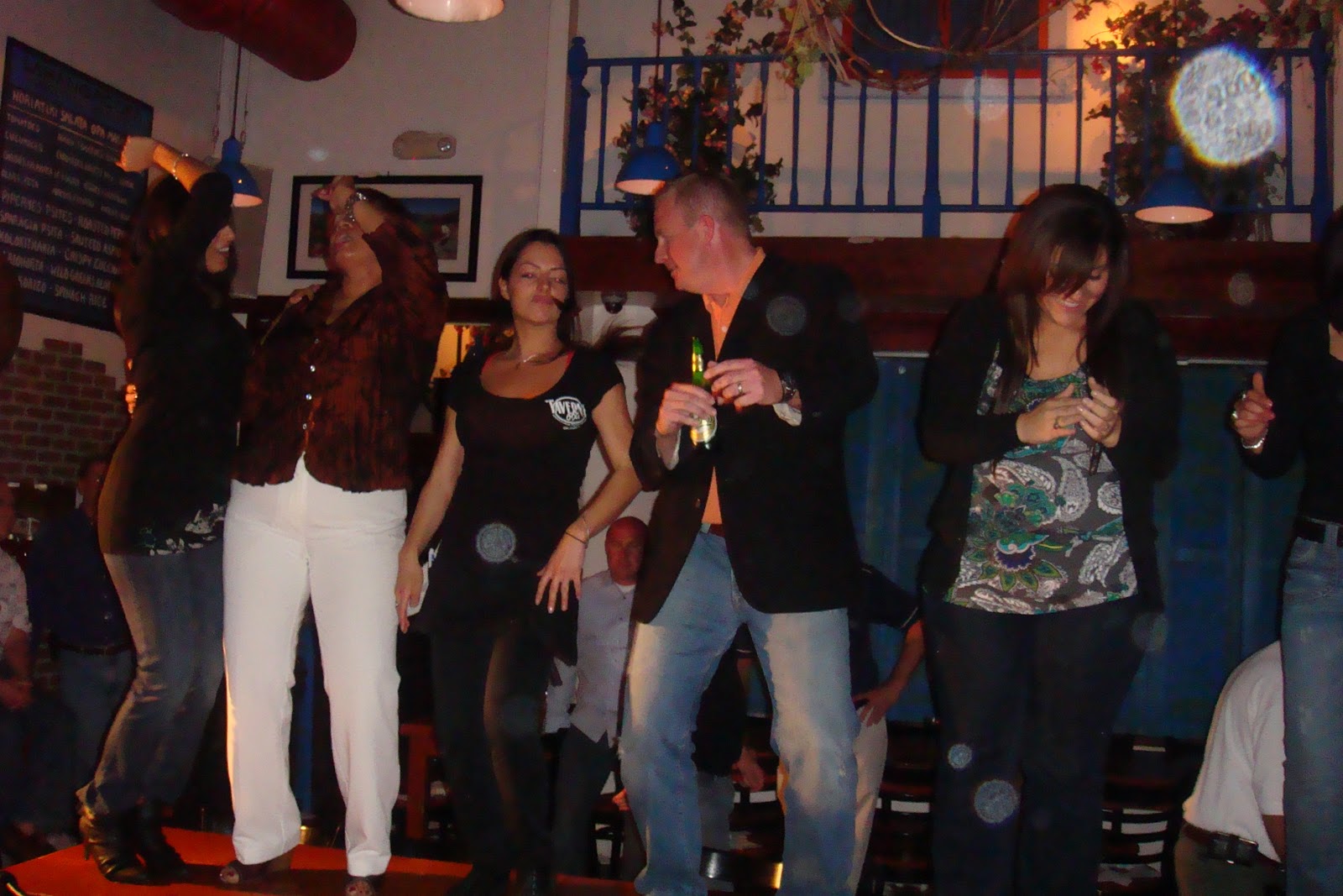 Todos jantavam calmamente. De repente, o som chamava a atenção, e os garçons subiam nas mesas dançavam, chamavam os clientes e arremessavam papéis pelo ar. O Bar era uma tremenda bagunça organizada. E a comida uma delícia. Comemos cordeiro, estava maravilhoso.